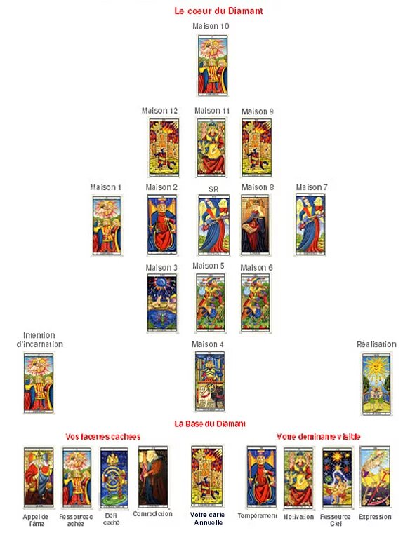 Ces maisons sont habitées par des chiffres que l'on peut représenter visuellement par les arcanes majeures du Tarot de Marseille.